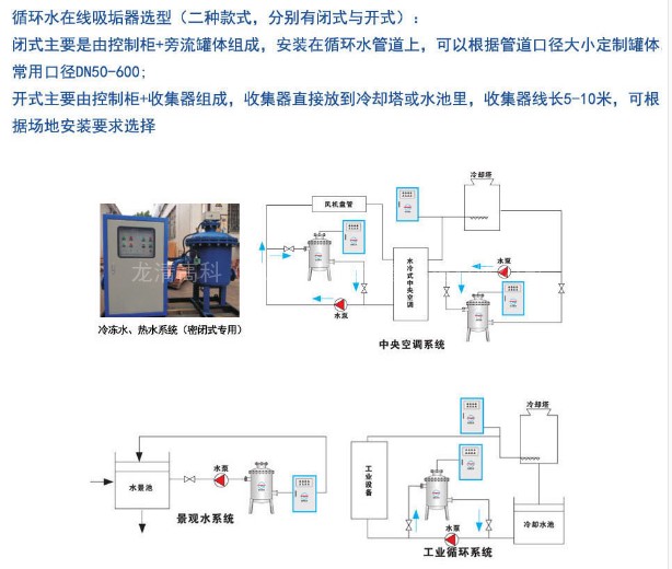 ●方 便 性该产品无须对用户管路进行任何更改,直接安装在系统蓄水池或集水盘,方便安全。